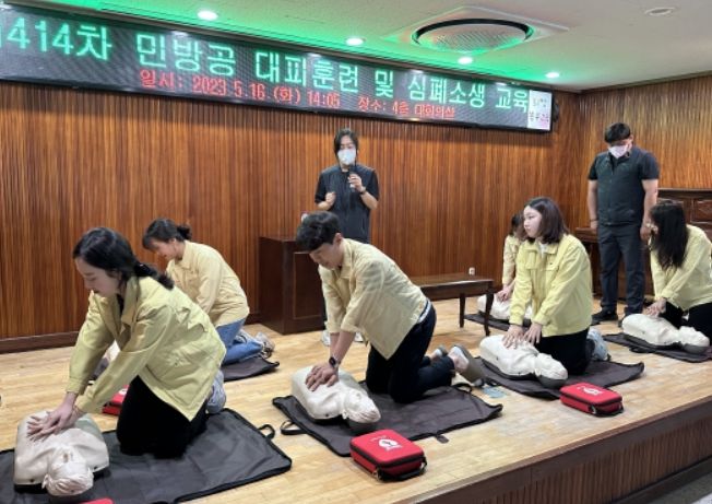 북부교육지원청은 대피 전·후 비상시 행동요령 교육을 실시하고 학생안전체험관 강사를 초빙, 전 직원 대상으로 심폐소생술과 제세동기 사용법을 교육했다.