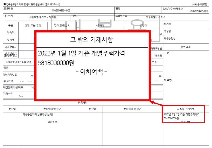 기존 일반건축물대장에는 소재지, 면적, 층수 등 일반 건축물에 대한 정보 등만 표기되어 있고, 개별주택가격을 알기 위해서는 개별주택가격확인서(수수료 800원)를 별도로 발급받아야만 했다.