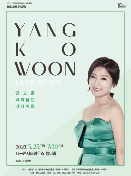 [제주교통복지신문 김강석 기자] 한국을 넘어 세계의 바이올린 역사를 새롭게 쓰고 있는 경희대학교 음악대학 기악과 교수로 재직 중인 양고운이 바이올린의 매력을 보여주기 위해 대구콘서트하우스에 찾아온다. 모차르트, 쇼송, 라벨, 피아졸라 곡까지 여러 시대에 걸친 다양한 작품들을 들을 기회를 제공하여 관객들의 귀를 즐겁게 만들 예정이다.