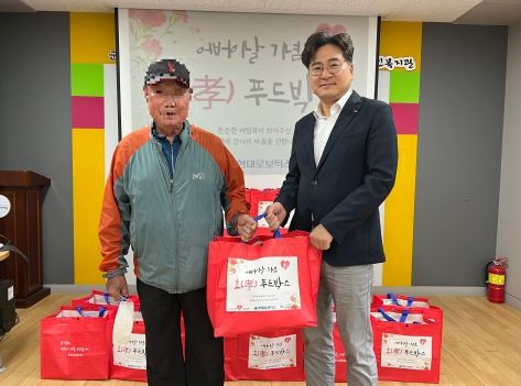 ‘효(孝)푸드박스’는 어르신들의 결식예방을 위해 마련된 물품으로 라면, 참치, 사골곰탕 등으로 구성했으며 사회적으로 소외되기 쉬운 독거어르신들의 안부를 묻고 물품을 전달했다.