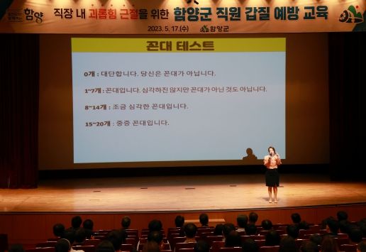 [제주교통복지신문 김강석 기자] 함양군은 지난 5월 17일 오후 문화예술회관 대공연장에서 전 공무원을 대상으로 갑질 예방 교육을 실시했다.