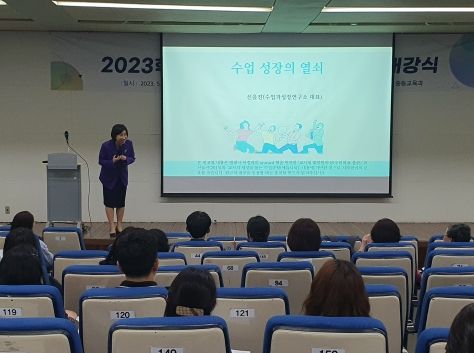 '수업공감성장연수'는 대전광역시교육청이 중등교원의 수업역량 강화를 위해 매년 중점 운영하는 직무연수로, 지난해까지 코로나19로 축소 운영되다가 올해는 15시간 집합 연수로 진행한다. 연수 내용은 국어, 수학, 사회, 과학, 영어, 에듀테크 등 교과별·주제별 6개 강좌를 개설하여 연수를 운영한다. 특히, '수업공감성장연수'는 교사들의 교실 수업 개선에 대한 열망과 자발적 참여로 이루어져 교원의 수업 전문성 및 내적 성장 효과와 만족도가 높은 수업역량강화 프로그램이다.
