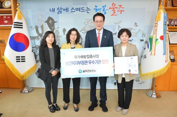 [제주교통복지신문 김강석 기자] 울주군보건소가 질병관리청 주관 ‘2023년 국가예방접종 사업’ 우수기관으로 선정돼 보건복지부장관상을 수상했다고 17일 밝혔다.