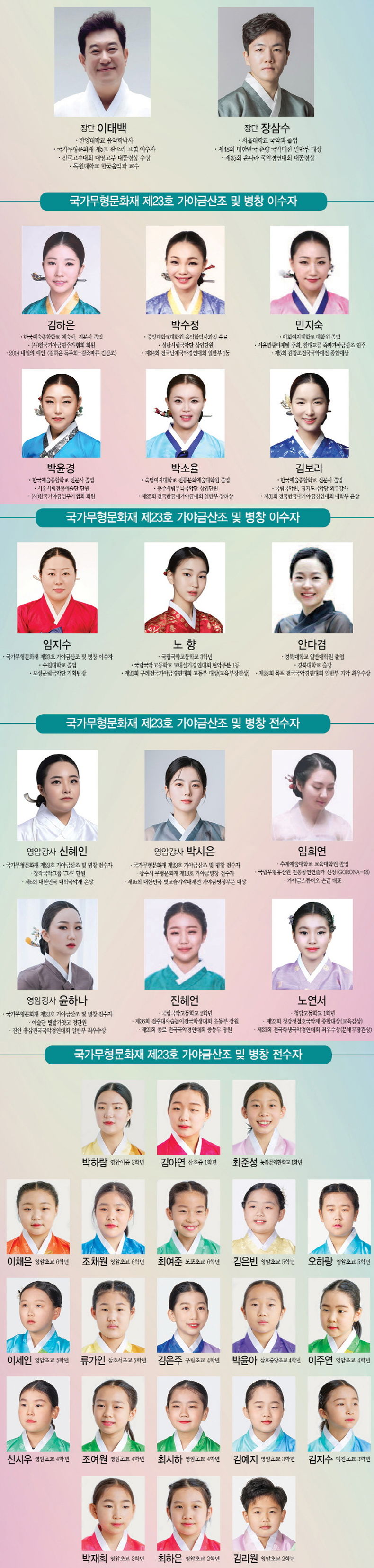 뒤를 이어 양승희 보유자의 이수자인 김하은, 박수정, 민지숙, 박윤경, 박소율, 임지수, 안다겸, 임희연, 신혜인, 박시은, 박하람, 김아연, 이채은, 조채원이 김죽파류 가야금산조(15분)를 연주하고 영암어린이 가야금연주단이 가야금 병창 ‘아리랑연곡’(밀양아리랑, 해주아리랑, 제주아리랑)을 연주한다.