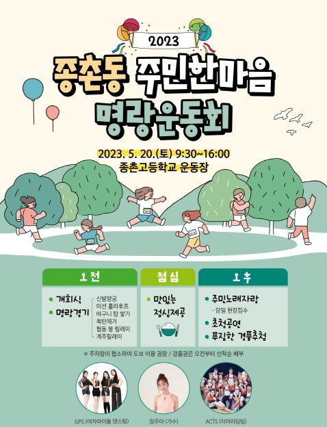 이날 행사는 난타·색소폰 연주 등 주민자치프로그램 발표 및 치어리딩댄스 등 식전공연을 시작으로 명랑경기, 주민노래자랑, 초청공연이 진행되며, 종촌동 주민 누구나 참석 가능하다.