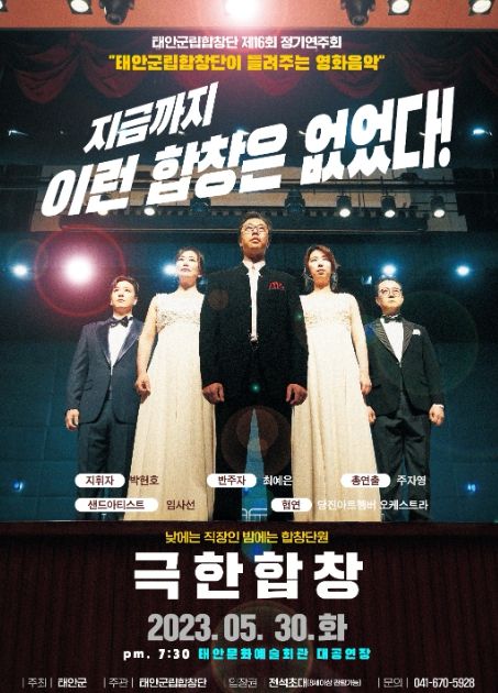 군은 오는 5월 30일 오후 7시 30분 군 태안군문화예술회관 대공연장에서 ‘태안군립합창단이 들려주는 영화음악’을 주제로 ‘제16회 태안군립합창단 정기연주회’를 연다고 18일 밝혔다.