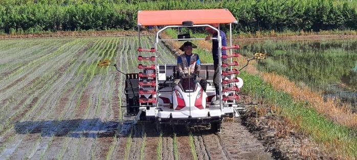 이날 모내기는 특별한 점이 있었다. 농촌지도자연합회 감사직을 맡고 있는 김종권(노성면) 회원이 보유한 8조식 ‘밀묘 소식재배’ 전용 이앙기를 활용해 작업이 이뤄졌다. 밀묘 소식재배는 노동력과 생산비 절감에 탁월한 신농업 기술의 하나다.