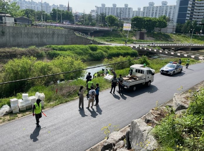 의정부경찰서 신곡지구대, 희망회복지원센터, 의정부1동 행정복지센터 등 인력 지원을 통해 하천 내 무단 적치물을 철거했다.