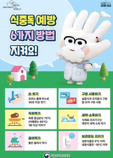 보건소 관계자는 실생활에서 충분히 실천 가능한 [식중독 예방 6대 수칙] ‘△ 손씻기 △ 익혀먹기 △ 끓여먹기 △ 칼·도마 구분 사용하기 △ 식재료·조리기구 세척·소독하기 △ 보관온도 지키기’를 준수하고, 조리기구는 열탕이나 살균소독제로 세척·소독하고 칼·도마는 식재료별 구분하여 사용하고 육류, 가금류, 달걀 등은 중심온도 75℃에서 1분 이상 충분히 가열하고 굴 등 어패류는 중심온도 85℃에서 1분 이상 완전히 익힌 후 섭취해야 한다고 덧붙였다.