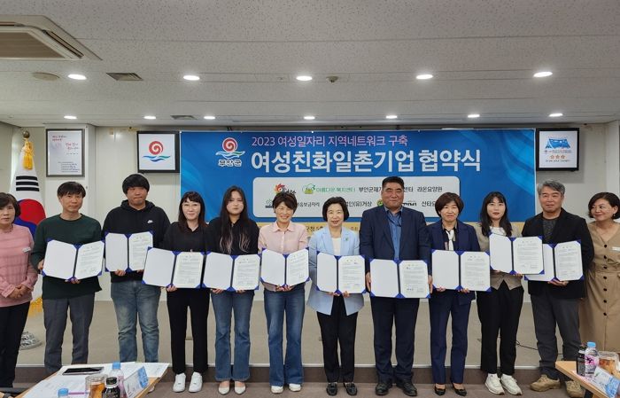 이날 협약식에는 부안군 기업 중 여성 취업자들의 적극적인 고용 유지를 위해 노력하는 15개 업체 중 ㈜한송, 아름다운복지센터, 부안군재가노인지원센터, 라온요양원, 둥근마음보금자리, (유)거상, (유)떡두꺼비, 산타요양원 8개 기업체 관계자와 여성 일자리 창출에 적극 협조할 것을 협약했다.
