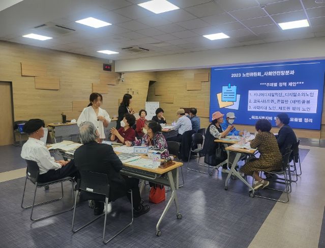 회의는 2022년도 노인위원회에서 제안하여 시행 중인 신규사업 모니터링 및 2024년도 사업 반영을 위한 노인정책 제안과 자유 토론 순서로 진행됐다.