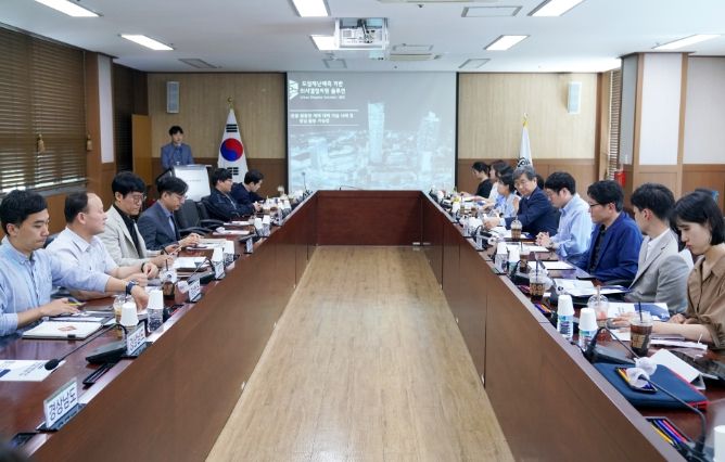 이날 주제발표는 한국과학기술정보연구원의 김광영 책임연구원이 맡아 ‘디지털트윈을 활용한 재해 대비 기술 사례 및 경남 활용 가능성’을 설명했다. 김광영 박사는 실제 구축한 ‘도심재난예측 기반 의사결정지원 솔루션’ 사례를 선보이며, 침수, 미세먼지, 지진 등의 다양한 사회문제를 해결하기 위한 방법론으로 데이터 기반 디지털트윈 기술의 활용도를 강조했다.