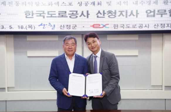 협약식에서는 산청군의 우수한 관광자원을 고속도로와 연계해 관광수요를 창출하고 산청군 농산물 판매 등을 통한 지역경제 활성화에 힘을 모으기로 약속했다.