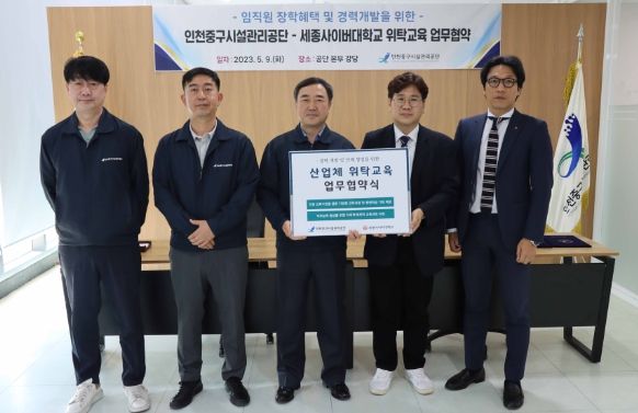 [제주교통복지신문 김강석 기자] 인천중구시설관리공단은 직원들의 자기 계발 및 평생학습 의욕 고취를 도모하기 위해 세종사이버대학교와 ‘산업체 위탁교육 업무협약’을 체결했다고 18일 밝혔다.