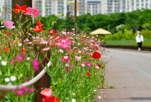 꽃양귀비, 안개초, 수레국화 등 강변 봄꽃 ‘절정’