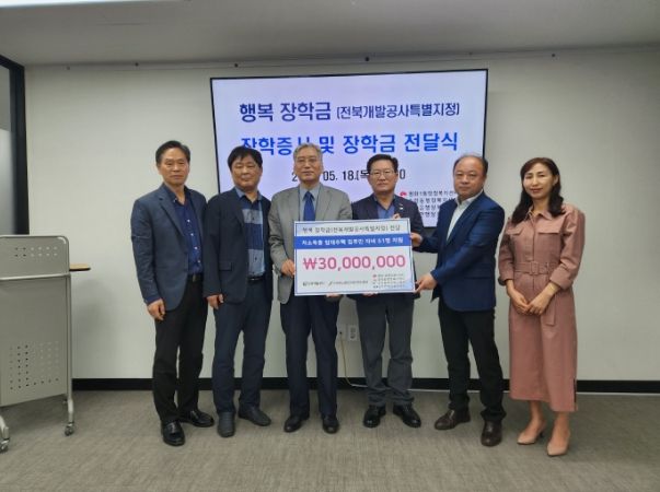 행복장학금은 도내 주거복지를 위해 힘쓰고 있는 전북개발공사에서 저소득층 임대아파트 입주민 자녀들을 위해 기탁한 기부금으로 지원하는 특별지정방식의 장학금으로 지난해에 이어 올해도 지원하게 됐다.