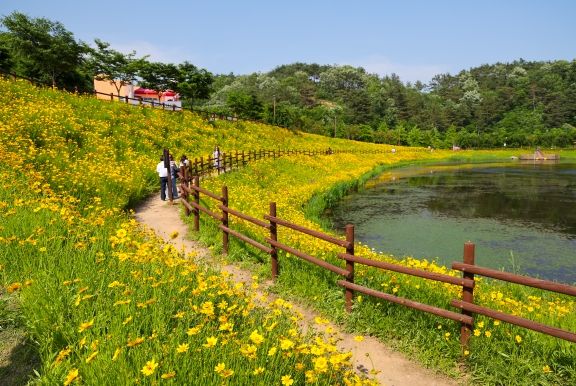 악양생태공원에는 지금 노오란 금계국, 하얀 샤스타데이지가 활짝 폈다. 꽃길 사이를 걷는 노부부, 손잡고 걷는 연인들, 아이와 함께 온 가족 등 다양한 이들이 공원을 찾는다. 꽃길을 걸으며 사진을 찍는 이들의 표정이 환하다. 악양생태공원에 서면 당신이 누구든 특별한 기분을 느끼게 해 줄 것이다. 5월이 가기 전에 소중한 이들과 함께 악양생태공원을 거닐어 보자.