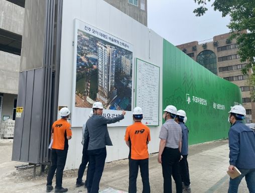 이날 점검에는 전주시 관계자들과 건축·전기·소방 분야별 전문가들이 참여해 △안전난간, 비계, 동바리 등 가설구조물 △전기작업에 대한 위험 방지 △임시소방 시설 설치 등 전반적인 현장 안전관리에 대해 세밀하게 들여다봤다.