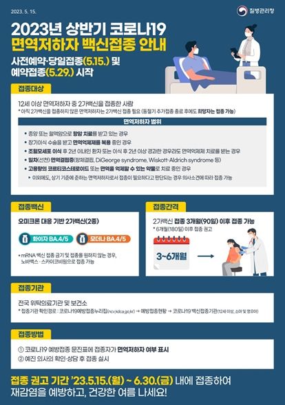 [제주교통복지신문 김강석 기자] 경산시는 최근 방역 상황 및 백신의 효과성, 면역유지 기간 등을 고려해 지난 15일부터 2023년 상반기 코로나19 면역저하자 등 고위험군에 대한 예방접종을 시행하고 있다.