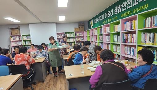 최상숙 새마을문고경산시지부 회장은 “복지 사각지대 어르신에게 교통안전교육과 중식나눔으로 조금이나마 도움을 드릴 수 있어 뿌듯하다”며 앞으로도 문고 활동 뿐만 아니라 지속적인 봉사활동을 펼쳐 어르신들과 더불어 사는 사회를 만들어 나가겠다”고 했다.