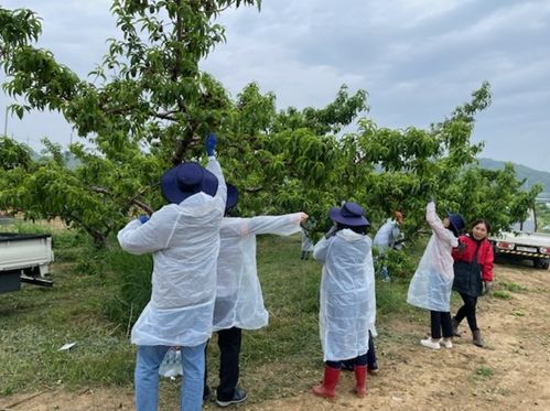 이번 일손 돕기는 고령화와 인건비 상승 등 일손을 구하기 어려운 농촌의 현실에 조금이나마 보탬이 되고자 복숭아 적과 및 환경정리 등을 했다.