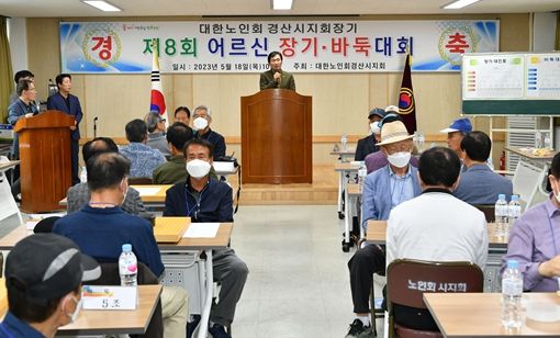 최재림 대한노인회 경산시지회 지회장은 개회사를 통해 “바쁜 일정에 참석해주셔서 감사하고, 승부에 집착하지 말고, 지더라도 서로 좋은 감정으로 마무리하는 친선 도모의 자리가 됐으면 좋겠다”고 했다.