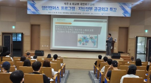 이번 국민외교센터 열린캠퍼스 프로그램은 18일 제주대학교 사회과학대학교 중강당에서 대학생을 대상으로 ‘지방정부의 공공외교 특강’을 진행했다.