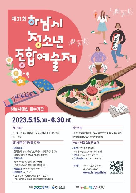 각 분야에서 활동하고 있는 전문가의 심사가 이뤄지며, 최우수상을 수상하는 청소년은 경기도청소년종합예술제에 하남시 대표로 참여하게 된다. 자세한 사항은 하남시청소년수련관 홈페이지를 통해 확인할 수 있다.