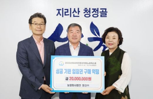 조직위에 따르면 이날 약정식은 이승화 공동위원장과 윤경순 청강(주) 대표 등 관계자가 참석한 가운데 2,000만 원 상당의 입장권 구매약정 체결, 환담, 기념촬영 순으로 진행됐다.