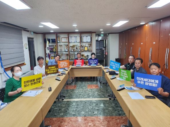 이날 엄진호 철산4동 단체장협의회장을 비롯한 회원들은 지구의 위기는 개인의 동참으로 극복할 수 있다는 데 공감하며 ‘일회용품 줄이기’, ‘장바구니 이용하기’, ‘에어컨 냉방온도 상향하기’ 등 일상 속 작은 탄속중립 실천 과제에 대해 의견을 나눴다.