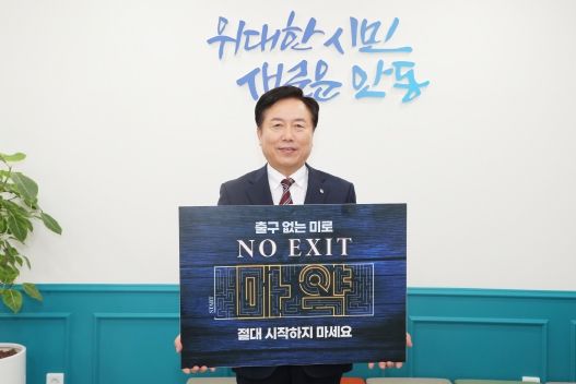 이동승 안동경찰서장의 지목을 받은 권 시장은 이날 ‘출구 없는 미로, NO EXIT 마약 절대 시작하지 마세요’라는 문구가 적힌 피켓을 들고 인증사진을 찍으며 캠페인에 동참했다.