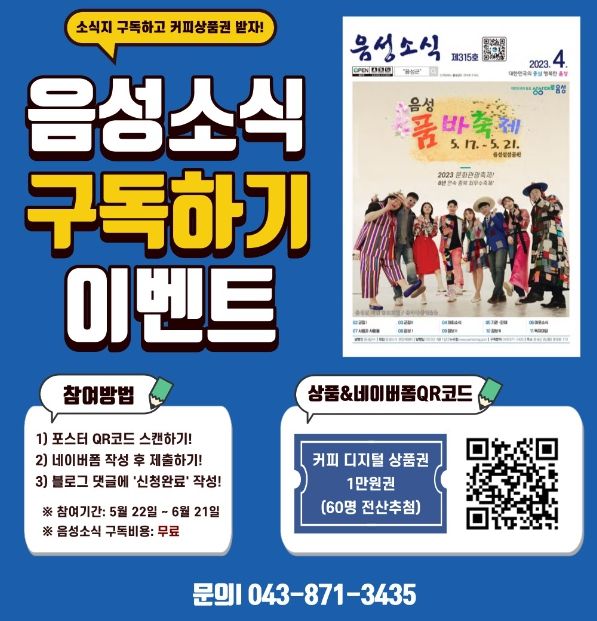 매월 1일에 발행하는 군정소식지 ‘음성소식’을 신규 구독 후 이벤트에 응모하면 된다.