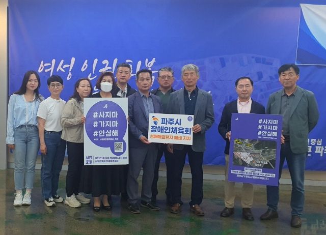 앞서 장애인체육회 회원들은 4월 18일에 열린 제13회 파주시장애인체육대회 결단식에서도 성매매 없는 파주 만들기에 연대의 뜻을 표한 바 있다.
