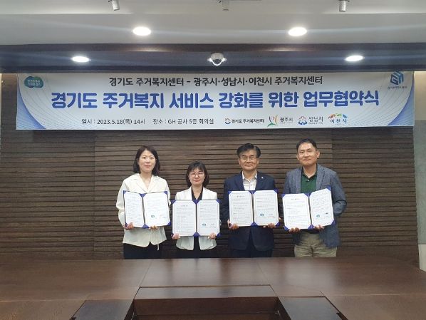 [제주교통복지신문 김강석 기자] 경기도 주거복지센터가, 18일 경기주택도시공사 본사에서 광주시 등 3개 시 주거복지센터와 도 내 취약계층의 주거복지서비스 및 주거복지 네트워크 강화를 위해 업무협약을 체결했다고 밝혔다.