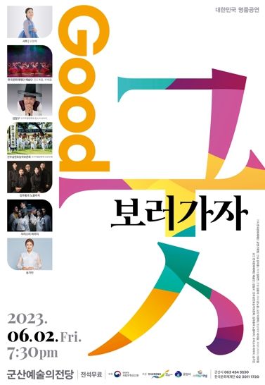 군산예술의전당은 개관 10주년을 맞아 오는 6월 2일 오후 7시 30분 대공연장에서 문화재청 국립무형유산원, 한국문화재재단과 공동기획으로 '굿(GOOD)보러가자' 공연을 추진한다고 밝혔다.