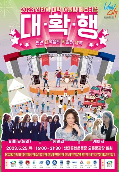 [제주교통복지신문 김강석 기자] 천안시는 처음으로 오는 25일 천안종합운동장 오륜문광장 일원에서 ‘2023 천안시 대학 어울림 페스티벌’을 개최한다.