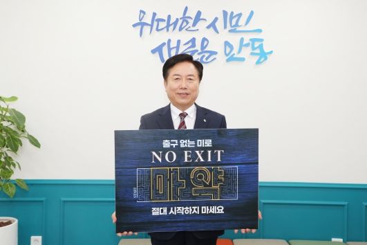 이동승 안동경찰서장의 지목을 받은 권 시장은 이날 ‘출구 없는 미로, NO EXIT 마약 절대 시작하지 마세요’라는 문구가 적힌 피켓을 들고 인증사진을 찍으며 캠페인에 동참했다.