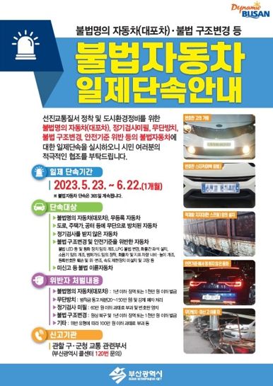 동래구 관계자는 “일제 단속 관련 포스터 및 전단지를 배부하는 한편 불법 자동차 집중 단속을 적극적으로 홍보해 건전한 자동차문화를 정착시켜 나가도록 노력하겠다”고 말했다.
