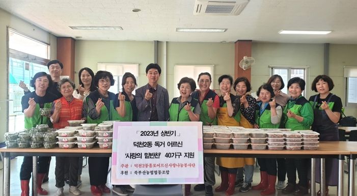 [제주교통복지신문 김강석 기자] 부산 북구 덕천2동 행정복지센터는 지난 17일 홀로어르신 사랑나눔 봉사단이 밑반찬을 만들어 관내 홀로어르신 40세대에 전달했다고 밝혔다.