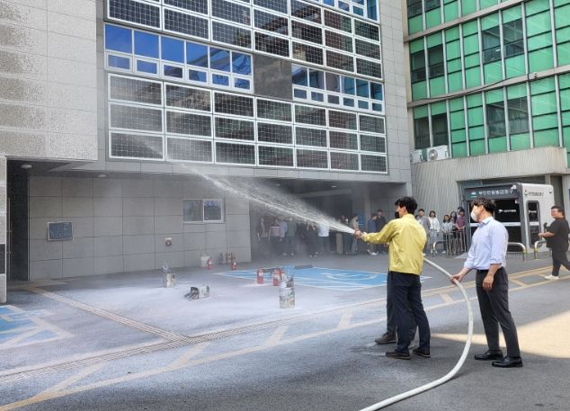 훈련은 화재 발생 신고 및 전파, 직원 대피 유도와 초기 화재 진압 순으로 실전과 다름없는 모의 화재진압 훈련으로 실시됐다.