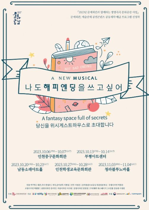 ‘나도 해피엔딩을 쓰고 싶어’는 오는 10월 초 중구문화회관에서의 공연을 시작으로 부평아트센터, 남동소래아트홀, 학생교육문화회관, 청라블루노바홀에서 10회에 걸쳐 관객들과 함께할 예정이다.