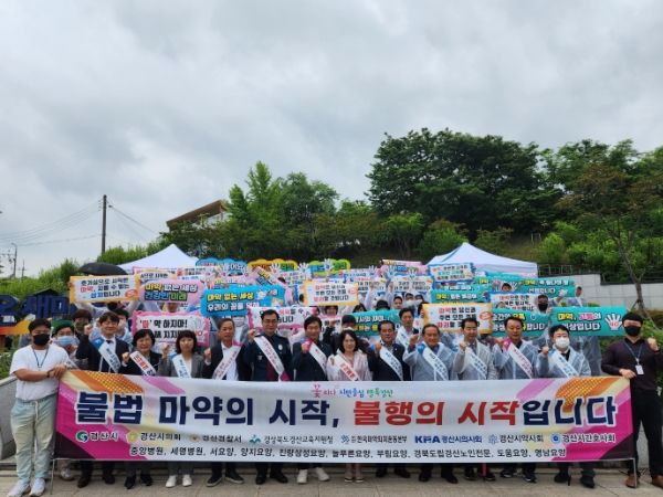 [제주교통복지신문 김강석 기자] 경상북도경산교육지원청은 5월 18일 경산시 주관 유관기관 합동으로 ‘불법 마약류 퇴치 및 약물 오남용 예방 대시민 결의대회 및 캠페인’을 실시했다.