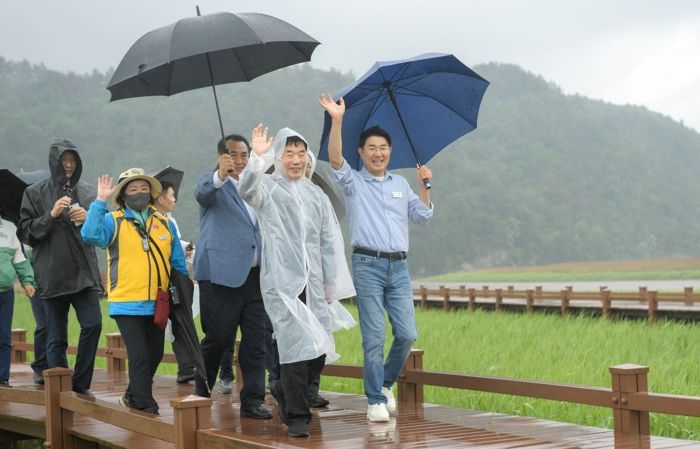 김 의장 일행은 순천만국가정원 내 장미정원과 키즈가든, 노을정원을 둘러보고 가든스테이에서 노 시장과 티타임을 가졌다. 노 시장으로부터 직접 현장 브리핑을 들은 김 의장은 “정원박람회를 통해 지역 화훼산업이 크게 발전하고 일자리도 창출될 것으로 기대된다”고 말하는 한편, “정원이 여름 휴가지로도 참 좋을 것 같다”고 깊은 관심을 드러냈다.