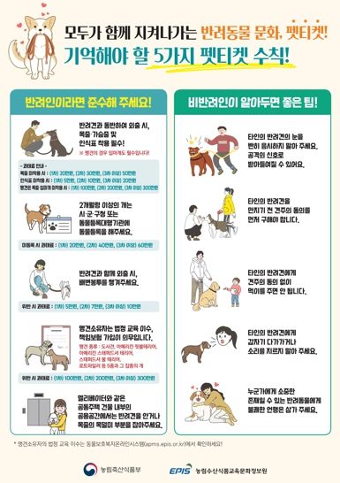 단속반은 반려견 동반 보호자가 자주 이용하는 공원, 아파트 인근 산책로 등을 중심으로 동물등록 여부를 확인하고 적발 시 현장에서 확인서를 징구해 50만원 이하의 과태료를 부과할 계획이다.