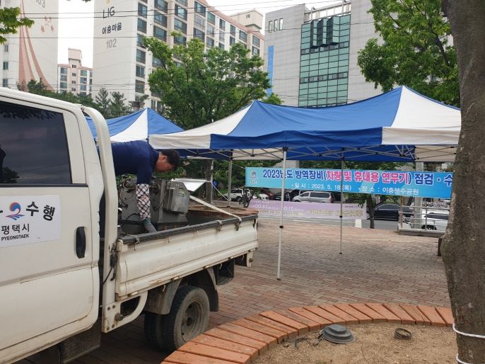 방역 장비 점검 및 수리는 매년 보건소와 전문 수리 업체가 합동으로 시행하고 있으며, 11개 면․동에서 보유하고 있는 차량용․휴대용 연무기 총 35대를 점검 수리했다.