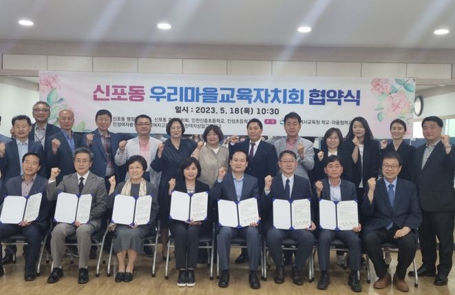 신포동 우리마을교육자치회는 인천에서 9번째로 구성된 읍면동 생활권 내에서 교육적 협력과 소통을 도모하기 위한 조직이다. 협약식에는 ▶신포동 행정복지센터 ▶주민자치회 ▶인천신흥초등학교 ▶인성초등학교 ▶인성여자중학교 ▶인성여자고등학교 ▶인천여자상업고등학교 등이 참석했다.