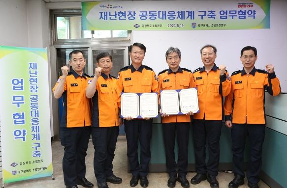 이번 협약은 오는 7월 대구에 편입되는 군위군과 대구·경북 경계 지역에 대한 재난현장 공동대응 체계를 강화하기 위해 대구와 경북 소방본부장, 소방서장 등 20여 명이 참석한 가운데 진행됐다.