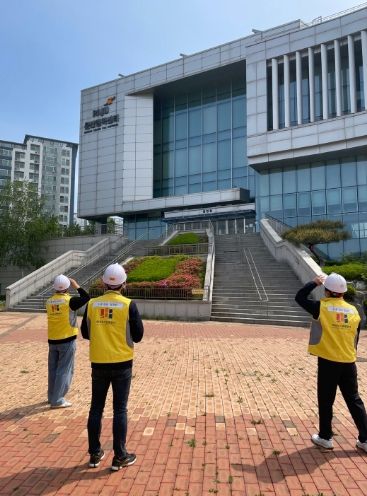 이날 드론 비행 승인을 위한 군부대 관계자를 비롯하여 재난안전팀, 해당 시설물 안전관리자, 드론 전문 자격증을 보유한 시설물 점검자와 합동점검을 실시했으며 건물 외벽 줄눈, 타일 손상 여부, 강풍에 의한 탈락 위험성 등을 점검했다.
