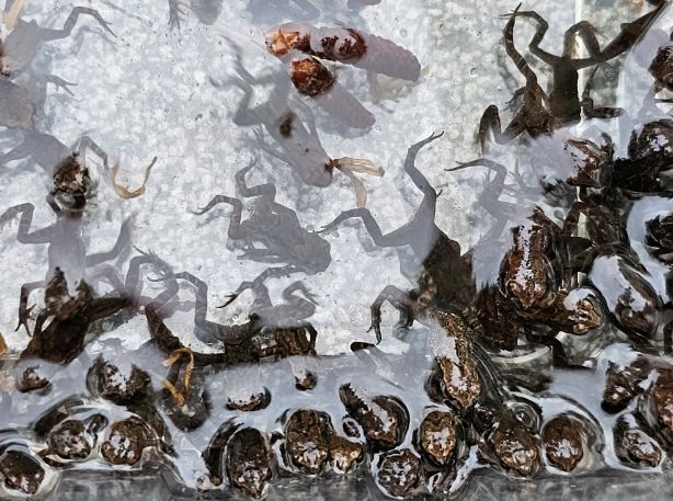 울산 중구는 지난 18일 오전부터 새끼 두꺼비들이 장현저류지에서 황방산으로 무리 지어 이동하기 시작했다고 밝혔다.