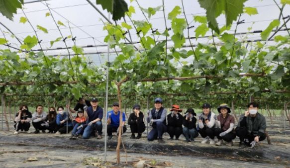 이날 사회복지과와 복지기획과 직원 20명은 최근 인건비 상승과 노동력 부족으로 어려움을 겪고 있는 농가에 조금이라도 보탬이 되고자 초여름 더위를 식혀준 단비를 맞으며 포도 순 정리, 덩굴손 제거 등 작업에 동참했다.